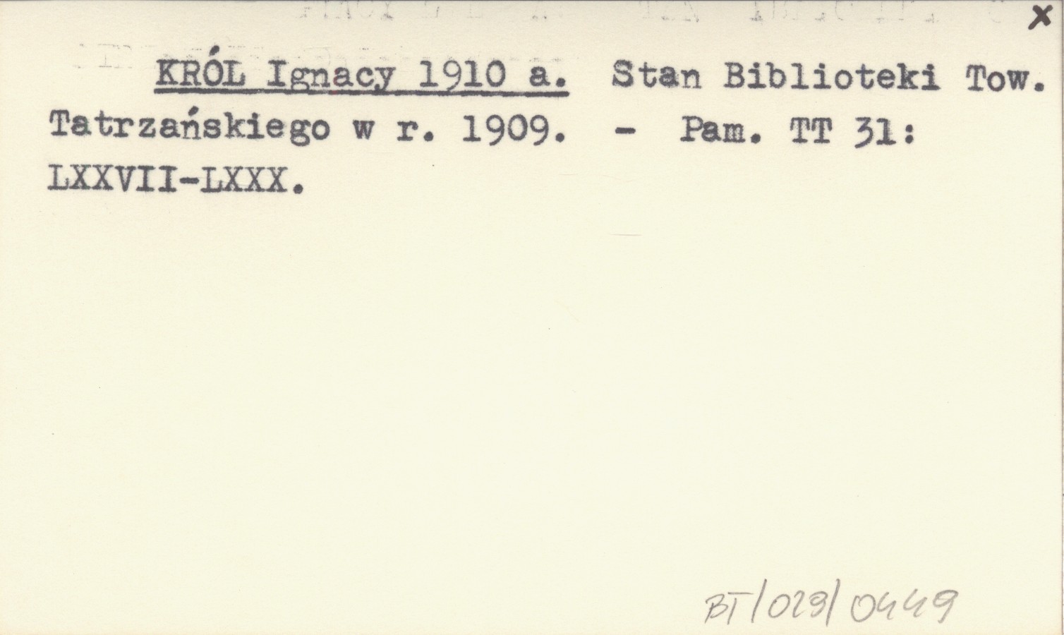 KRÓL Ignacy 1910 a Stan Biblioteki Tow. Tatrzańskiego w r. 1909.