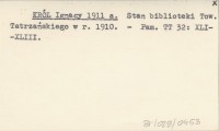 KRÓL Ignacy 1911 a Stan biblioteki Tow. Tatrzańskiego w r. 1910.