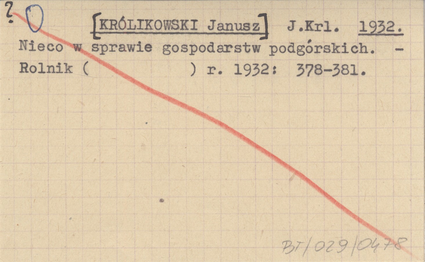 J. Krl. [KRÓLIKOWSKI Janusz] 1932 Nieco w sprawie gospodarstw podgórskich.