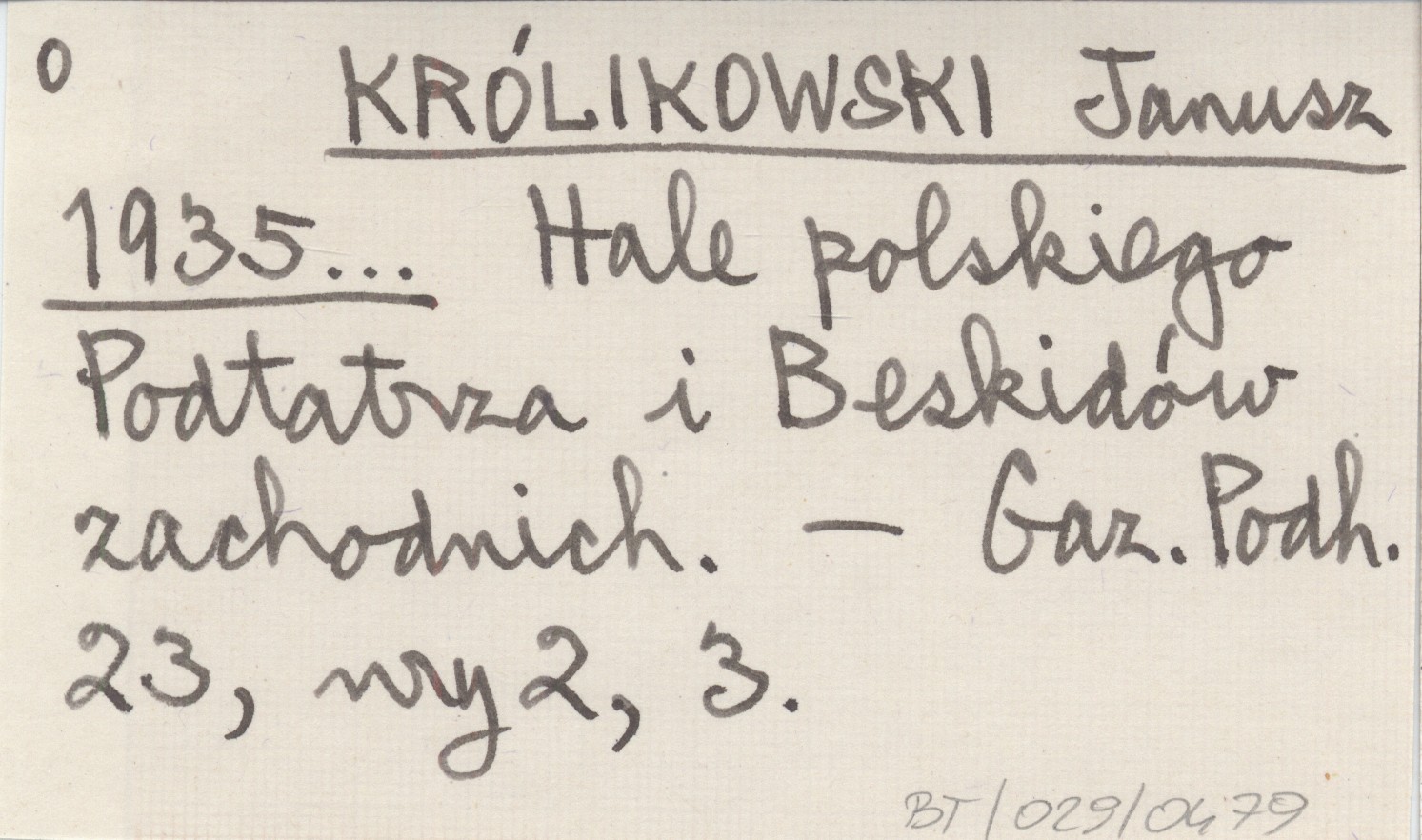 KRÓLIKOWSKI Janusz 1935... Hale polskiego Podtatrza i Beskidów zachodnich.
