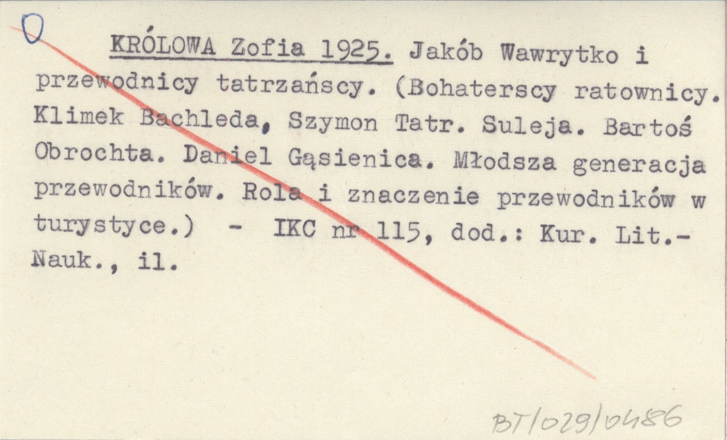 KRÓLOWA Zofia 1925 Jakób Wawrytko i przewodnicy tatrzańscy. (Bohaterscy ratownicy. Klimek Bachleda, Szymon Tatar. Suleja. Bartoś Obrochta. Daniel Gąsienica. Młodsza generacja przewodników. Rola i znaczenie przewodników w turystyce).