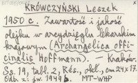 KRÓWCZYŃSKI Leszek 1950 c Zawartość i jakość olejku w arcydzięglu lekarskim krajowym (Archangelica officinalis Hoffmann).