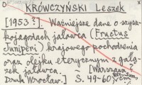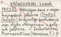 KRÓWCZYŃSKI Leszek [1953?] Ważniejsze dane o szyszkojagodach jałowca (Fructus Juniperi) krajowego pochodzenia oraz olejku eterycznym z gałązek jałowca.