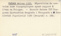 KRÖMER Helena 1933 Répartition de certains noms topographiques ayant rapport á l'eau en Pologne.