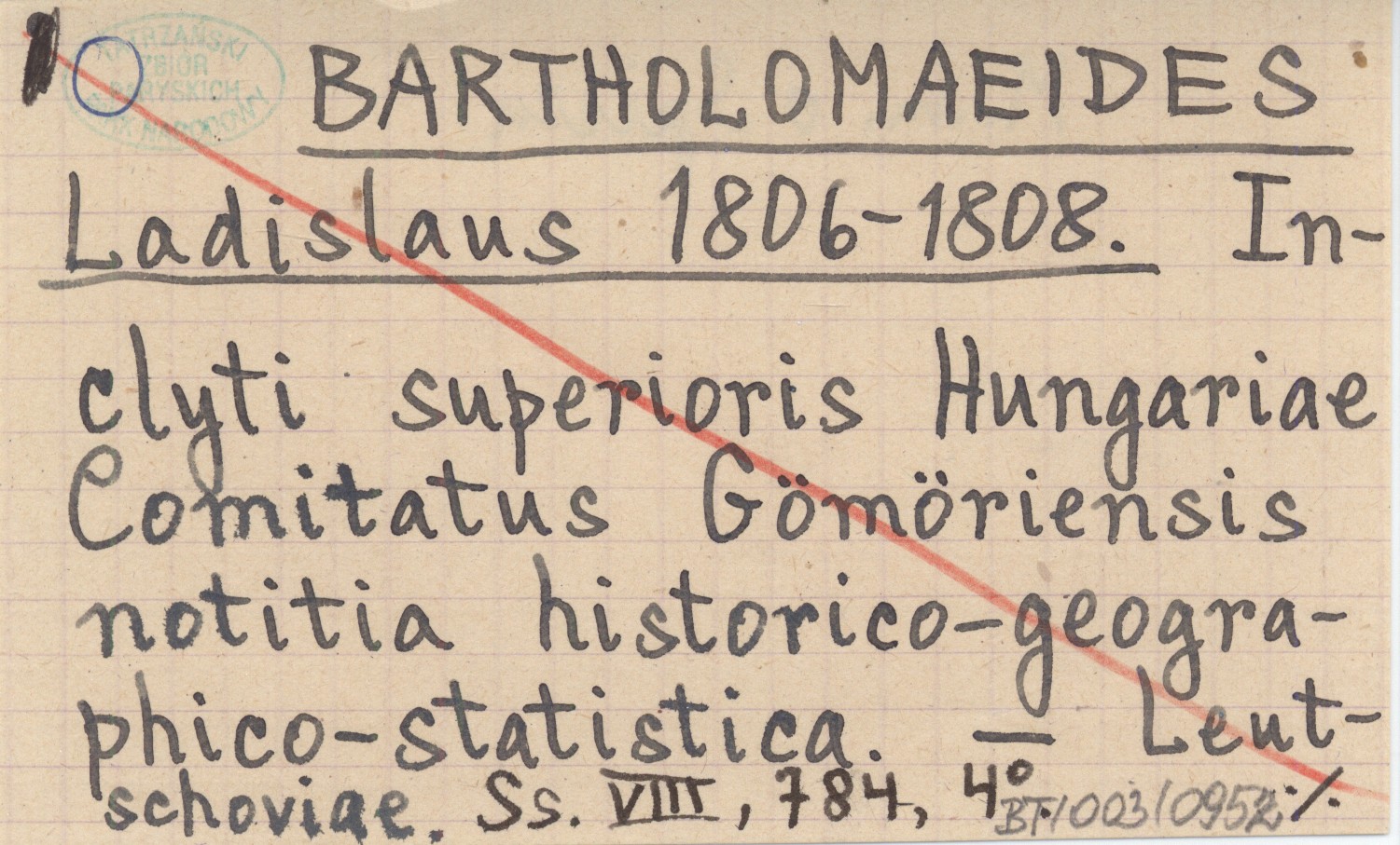 BARTHOLOMAEIDES Ladislaus 1806-1808 Inclyti superioris Hungariae Comitatus Gömöriensis notatia historico-geographico-statistica.