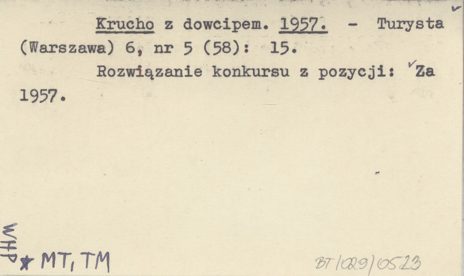 Turysta (Warszawa) , 6, nr 5 (58): 15. Rozwiązanie konkursu z pozycji: Za 1957