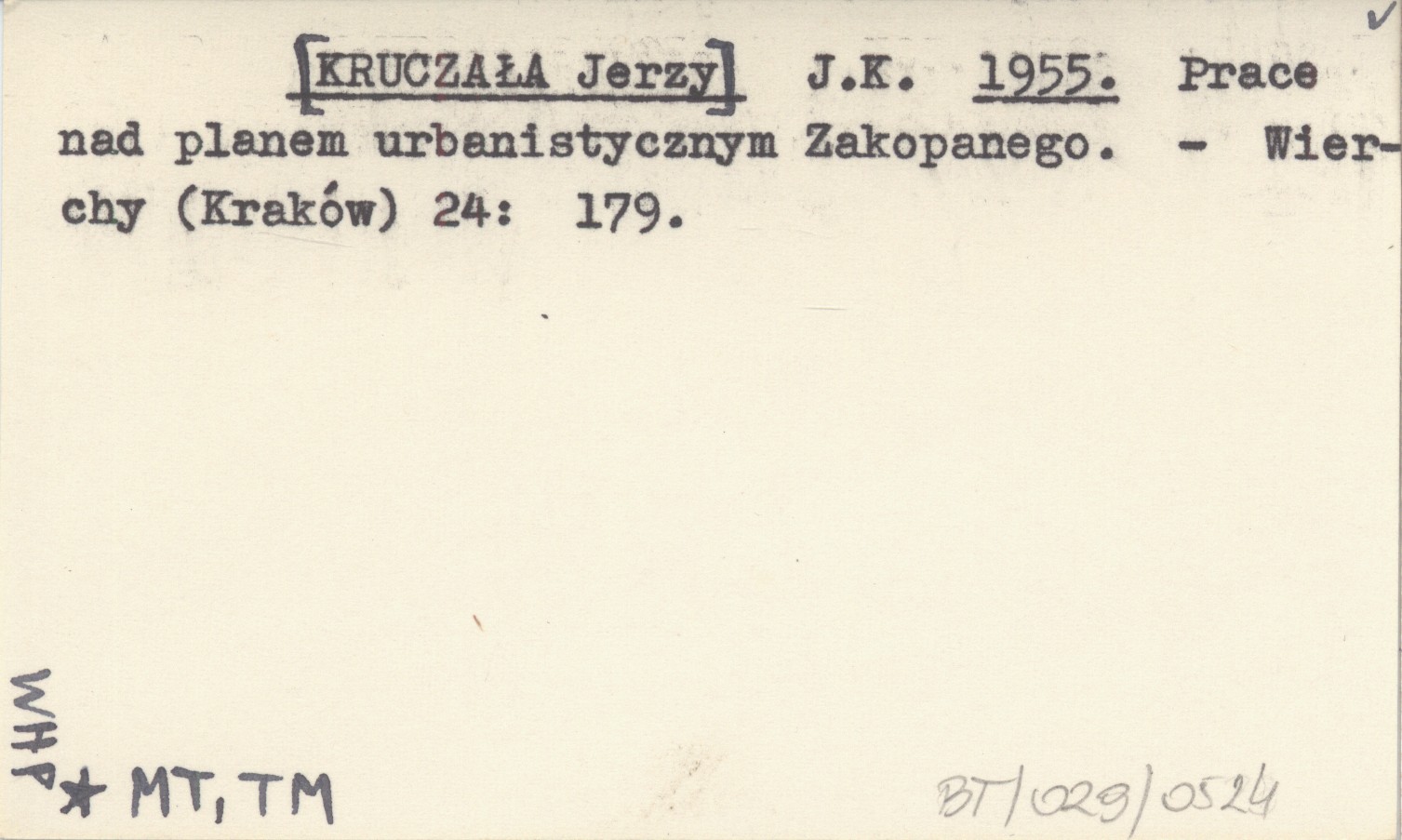 J. K. [KRUCZAŁA Jerzy] 1955 Prace nad planem urbanistycznym Zakopanego.