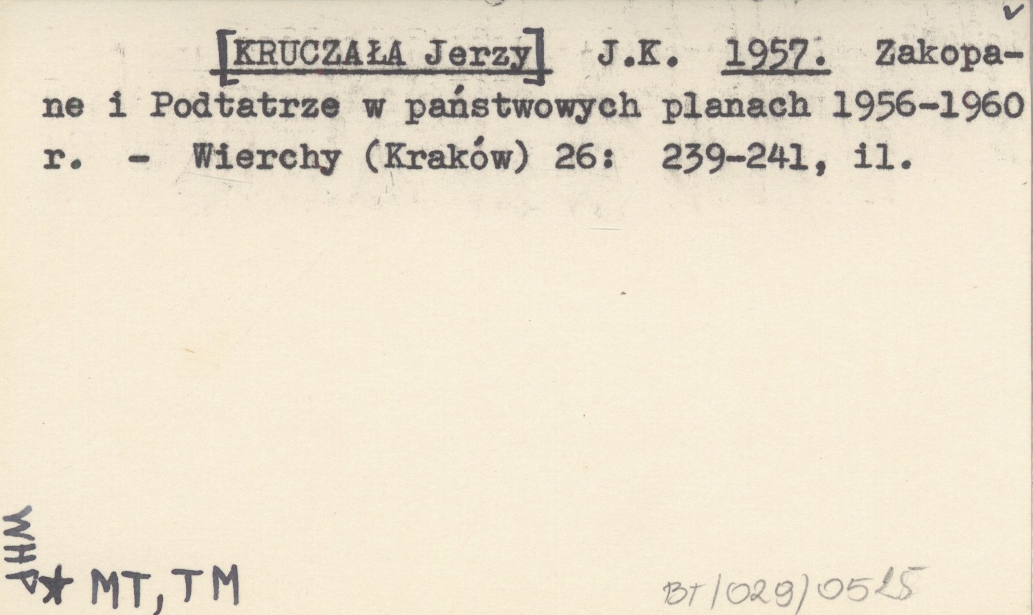 J. K. [KRUCZAŁA Jerzy] 1957 Zakopane i Podtatrze w państwowych planach 1956-1960 r.