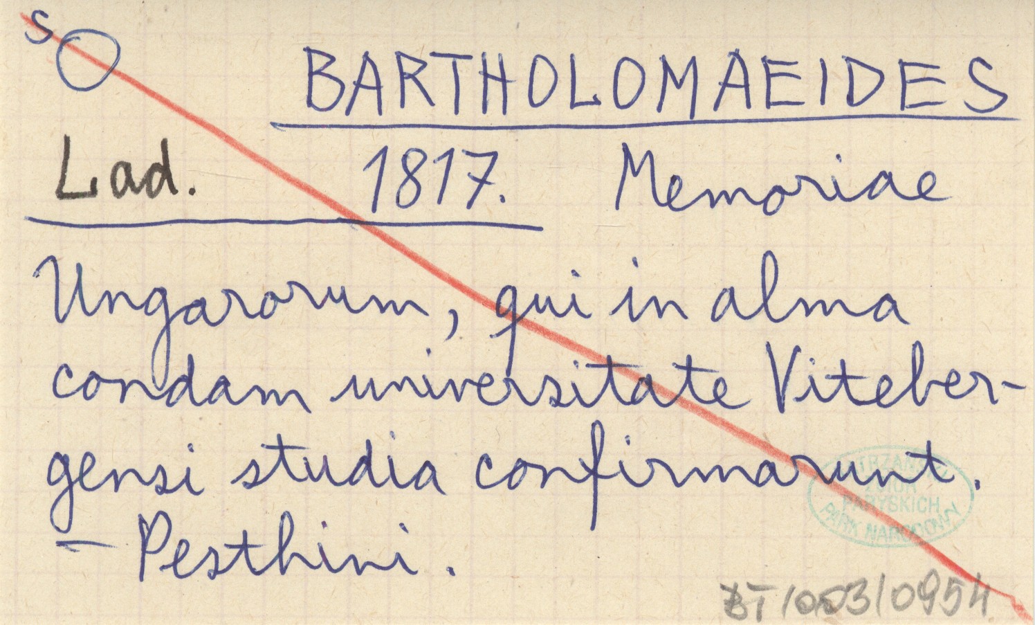 BARTHOLOMAEIDES Ladislaus 1817 Memoriae Ungarorum, qui in alma condam universitate Vitebergensi studia confirmarunt.