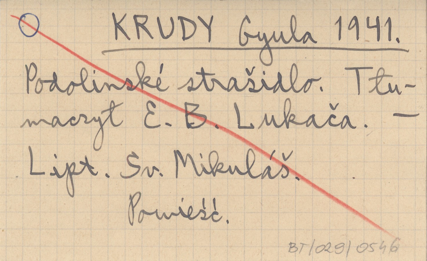 KRUDY Gyula 1941 Podolinské strašidlo. Tłumaczył E. B. Lukača.