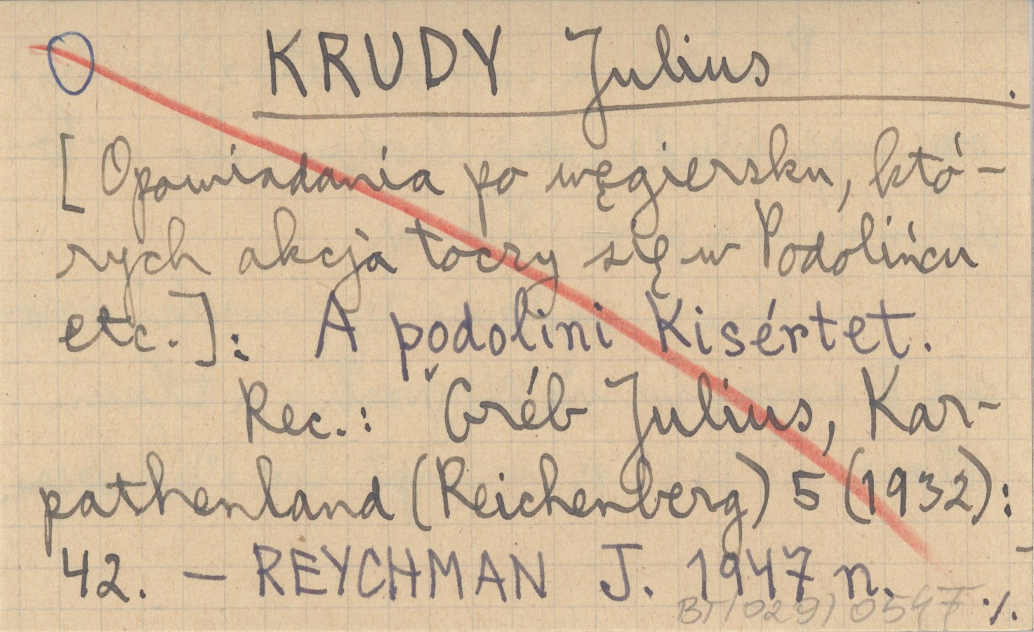 KRUDY Julius [Opowiadania po węgiersku, których akcja toczy się w Podolińcu etc.] A podolini Kisértet.