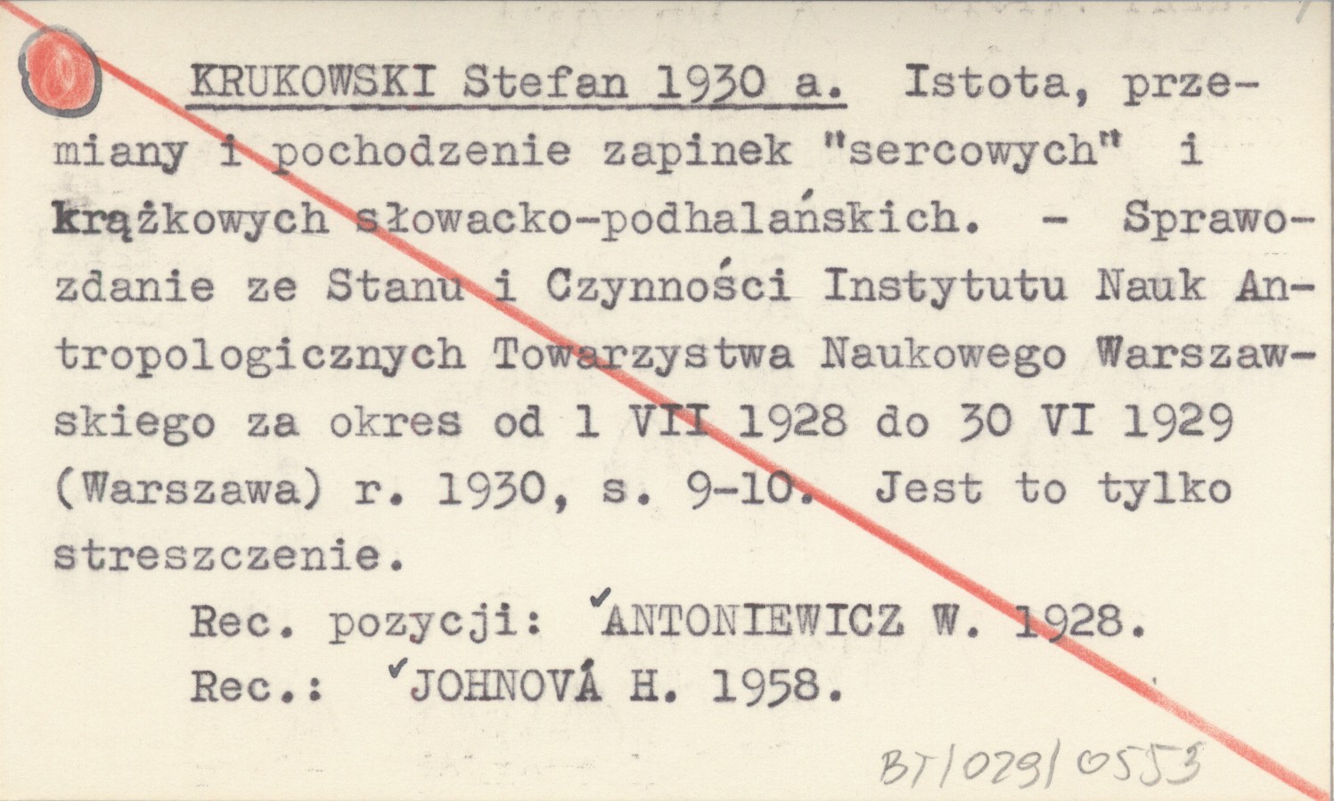 Sprawozdanie ze Stanu i Czynności Instytutu Nauk Antropologicznych Towarzystwa Naukowego Warszawskiego za okres od 1 VII 1928 do 30 VI 1929 Warszawa , S. 9-10. Jest to tylko streszczenie. REC: ANTONIEWICZ W. 1928 ; JOHNOVÁ H. 1958 ;