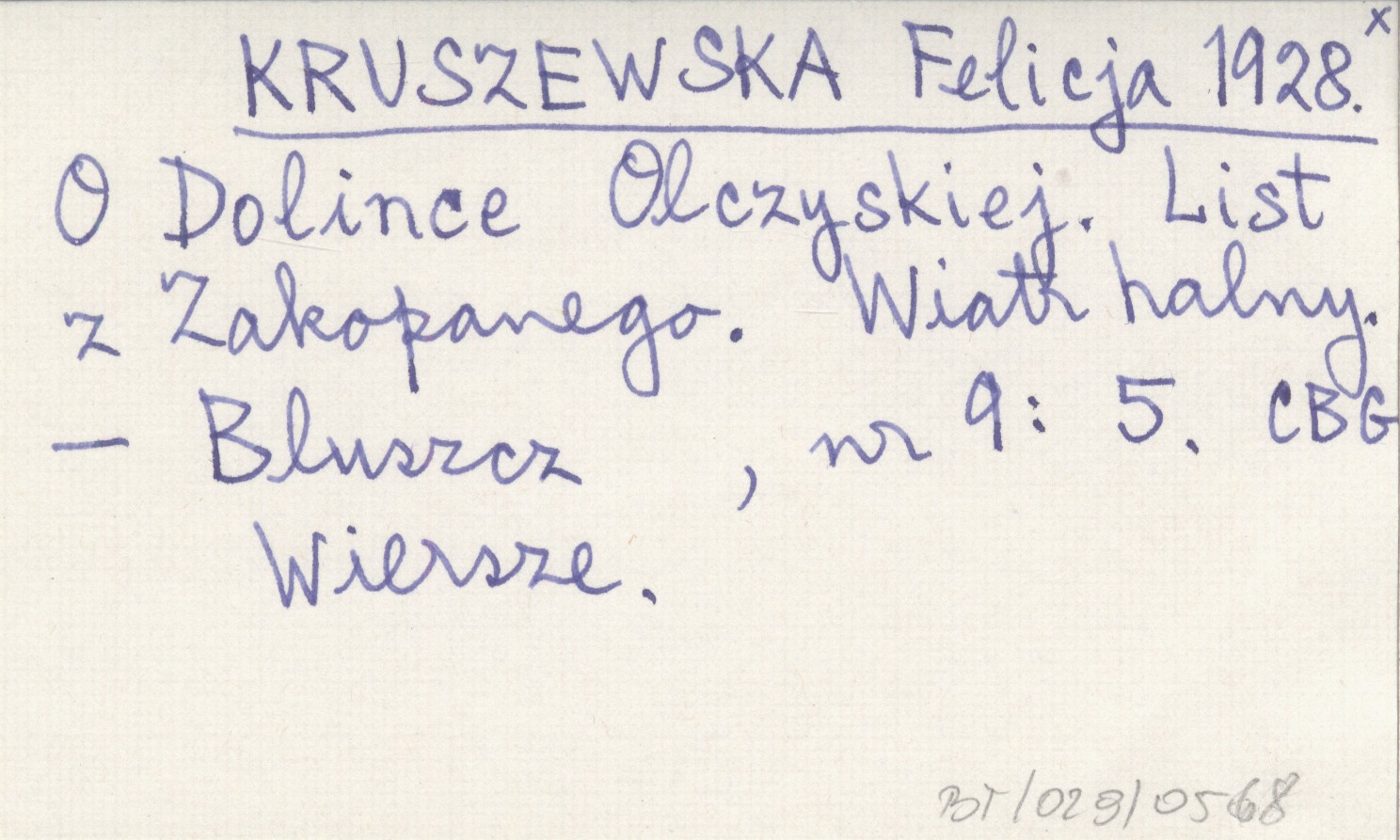 KRUSZEWSKA Felicja 1928 O Dolince Olczyskiej. List z Zakopanego. Wiatr halny.