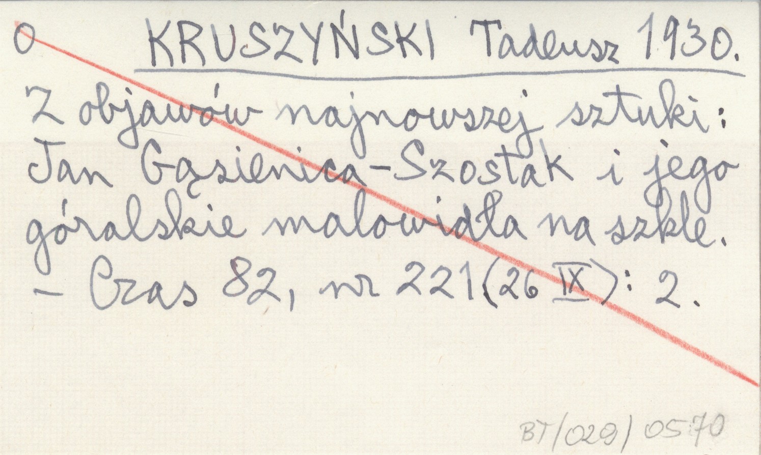 KRUSZYŃSKI Tadeusz 1930 Z objawów najnowszej sztuki: Jan Gąsienica-Szostak i jego góralskie malowidła na szkle.