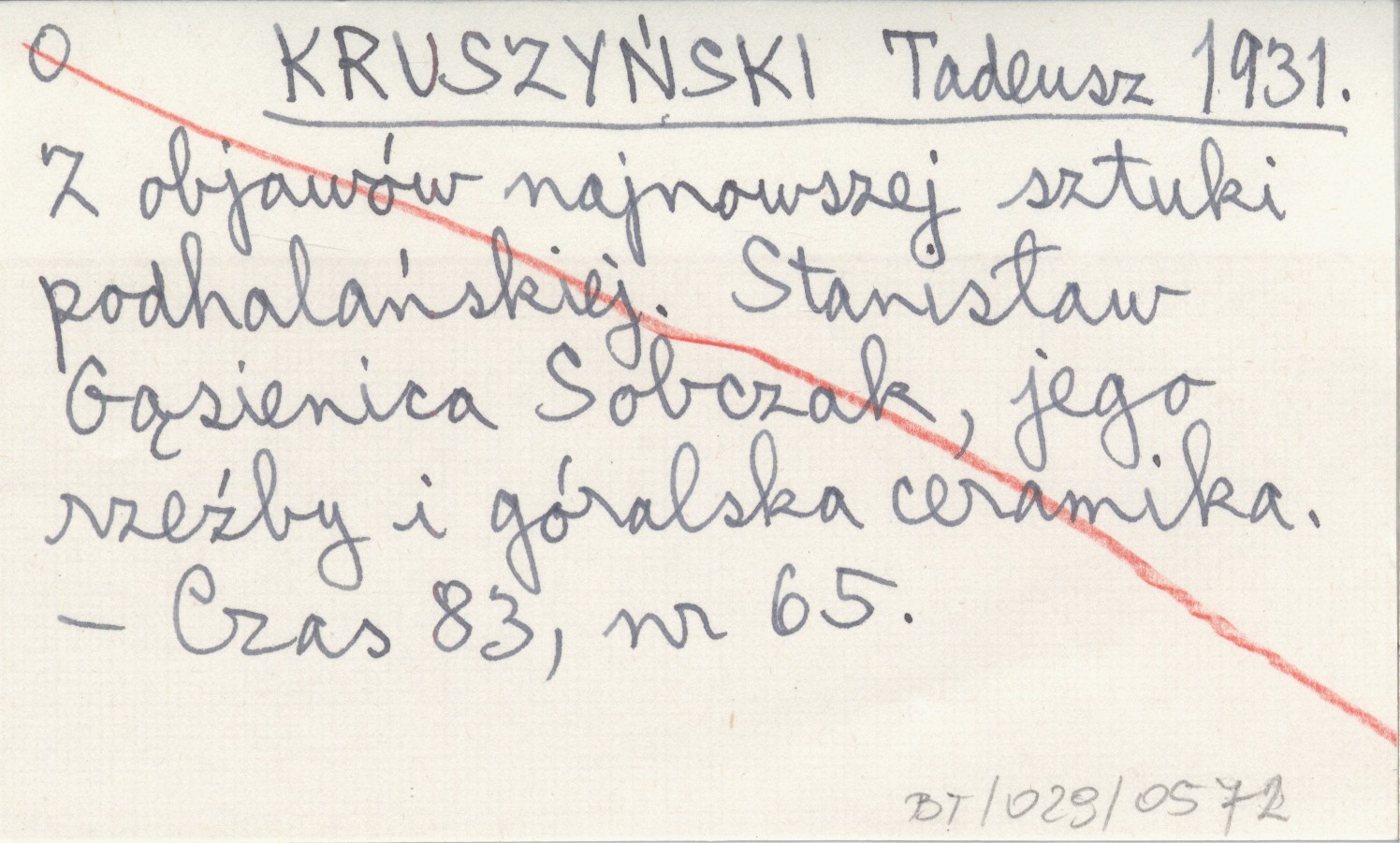 KRUSZYŃSKI Tadeusz 1931 Z objawów najnowszej sztuki podhalańskiej. Stanisław Gąsienica Sobczak, jego rzeźby i góralska ceramika.