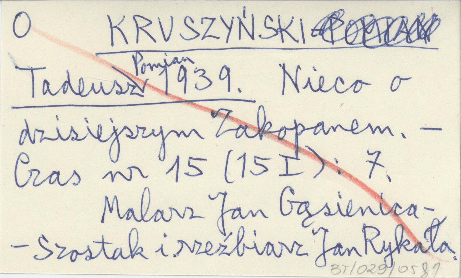 KRUSZYŃSKI Tadeusz Pomian 1939 Nieco o dzisiejszym Zakopanem.