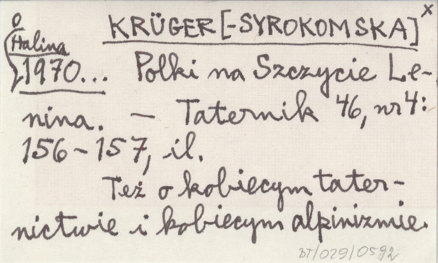 KRÜGER[-SYROKOMSKA] Halina 1970... Polski na Szczycie Lenina.