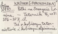 KRÜGER[-SYROKOMSKA] Halina 1971... Góry czy sztuka?