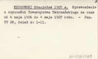KRYGOWSKI Stanisław 1907 a Sprawozdanie z czynności Towarzystwa Tatrzańskiego za czas od 6 maja 1906 do 4 maja 1907 roku.