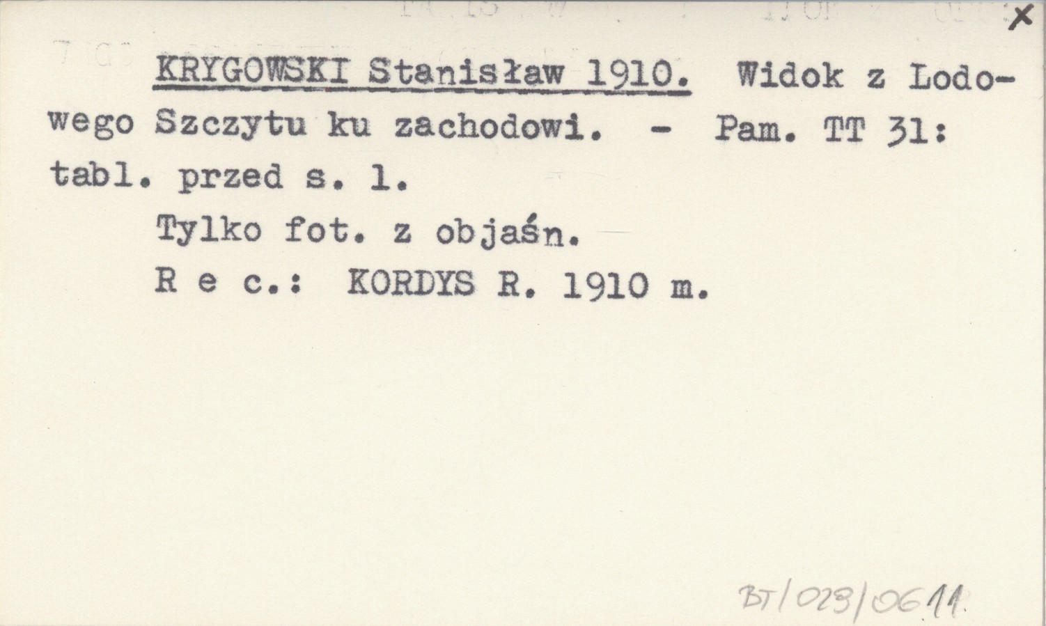 Pamiętnik Towarzystwa Tatrzańskiego, 31: k. po s. 1. Tylko fot. z objaśn. REC: KORDYS R. 1910 m