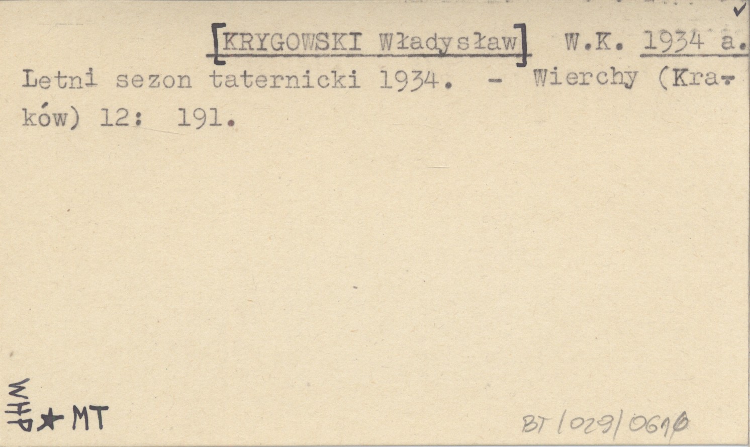W. K. [KRYGOWSKI Władysław] 1934 a Letni sezon taternicki 1934.
