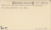 W. K. [KRYGOWSKI Władysław] 1934 b 70-lecie urodzin Franciszka Nowickiego.
