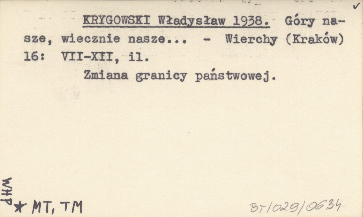 KRYGOWSKI Władysław 1938 Góry nasze, wiecznie nasze...