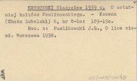 KRYGOWSKI Władysław 1939 c O ostatniej książce Pawlikowskiego.