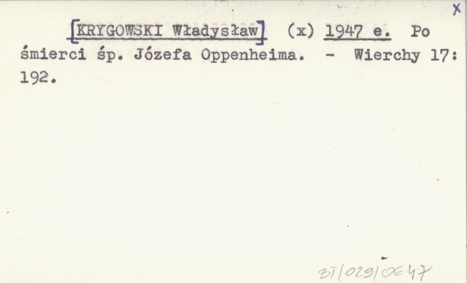 (x) [KRYGOWSKI Władysław] 1947 e Po śmierci śp. Józefa Oppenheima.