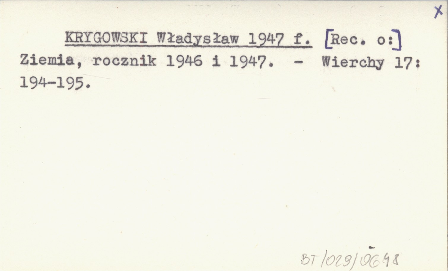 KRYGOWSKI Władysław 1947 f [Rec. o:] Ziemia, rocznik 1946 i 1947.