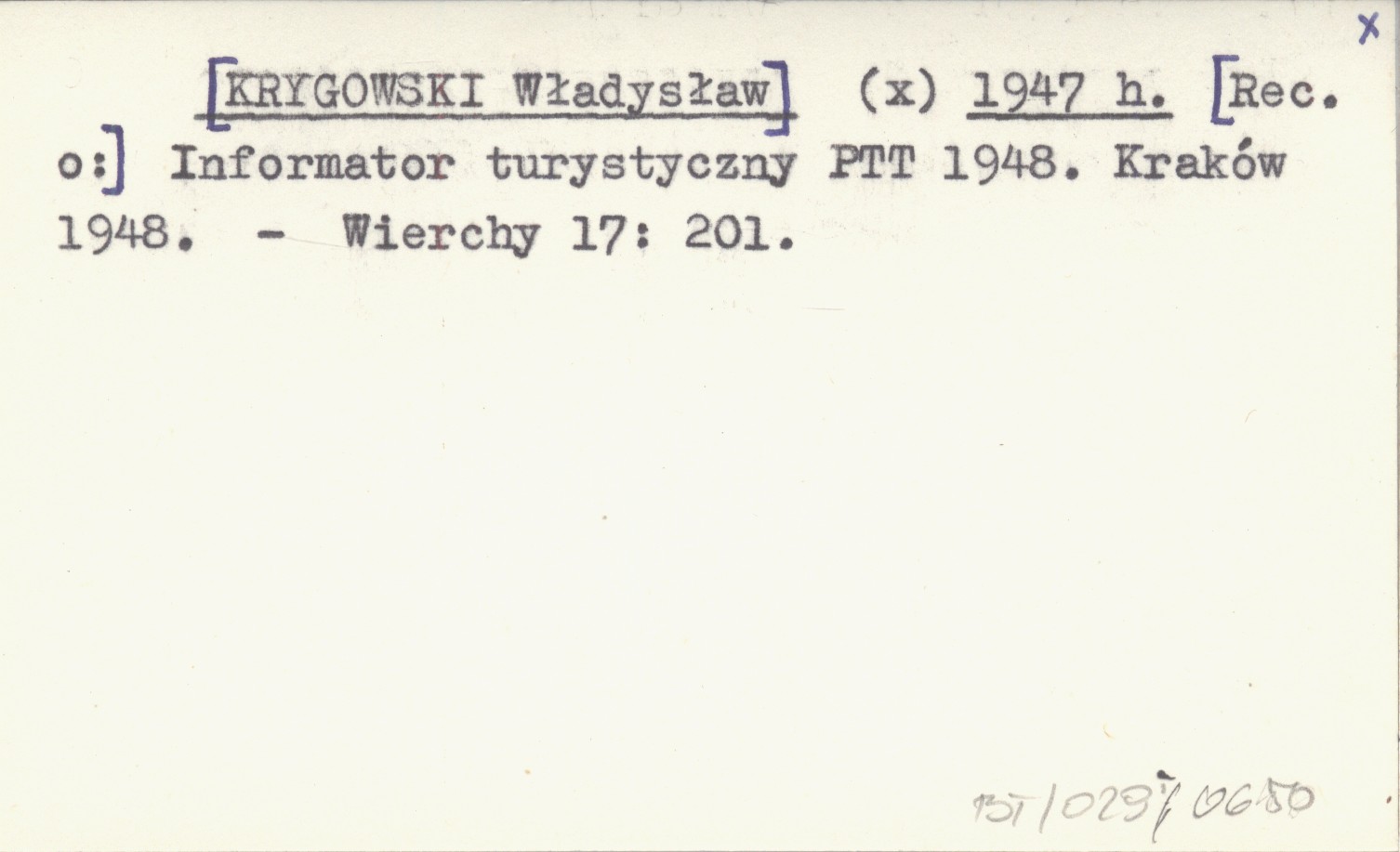 (x) [KRYGOWSKI Władysław] 1947 h [Rec. o:] Informator turystyczny PTT 1948. Kraków 1948.