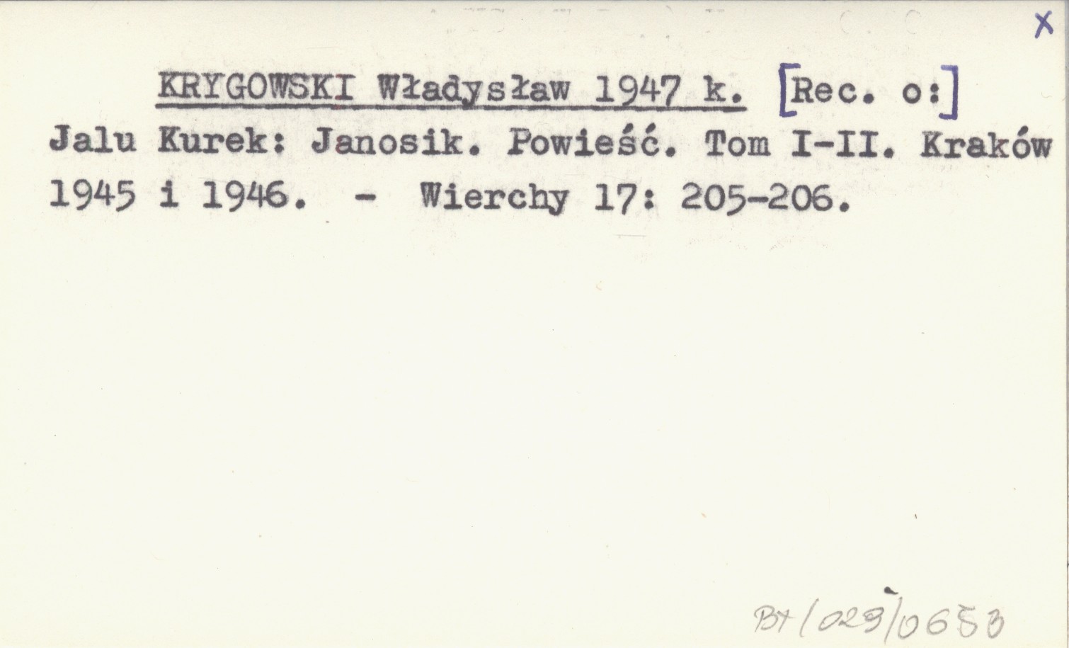 KRYGOWSKI Władysław 1947 k [Rec. o:] Jalu Kurek: Janosik. Powieść. Tom I-II. Kraków 1945 i 1946.