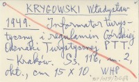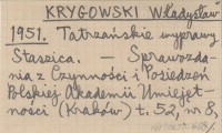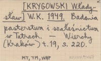 W. K. [KRYGOWSKI Władysław] 1949 a Bibliografia górska.