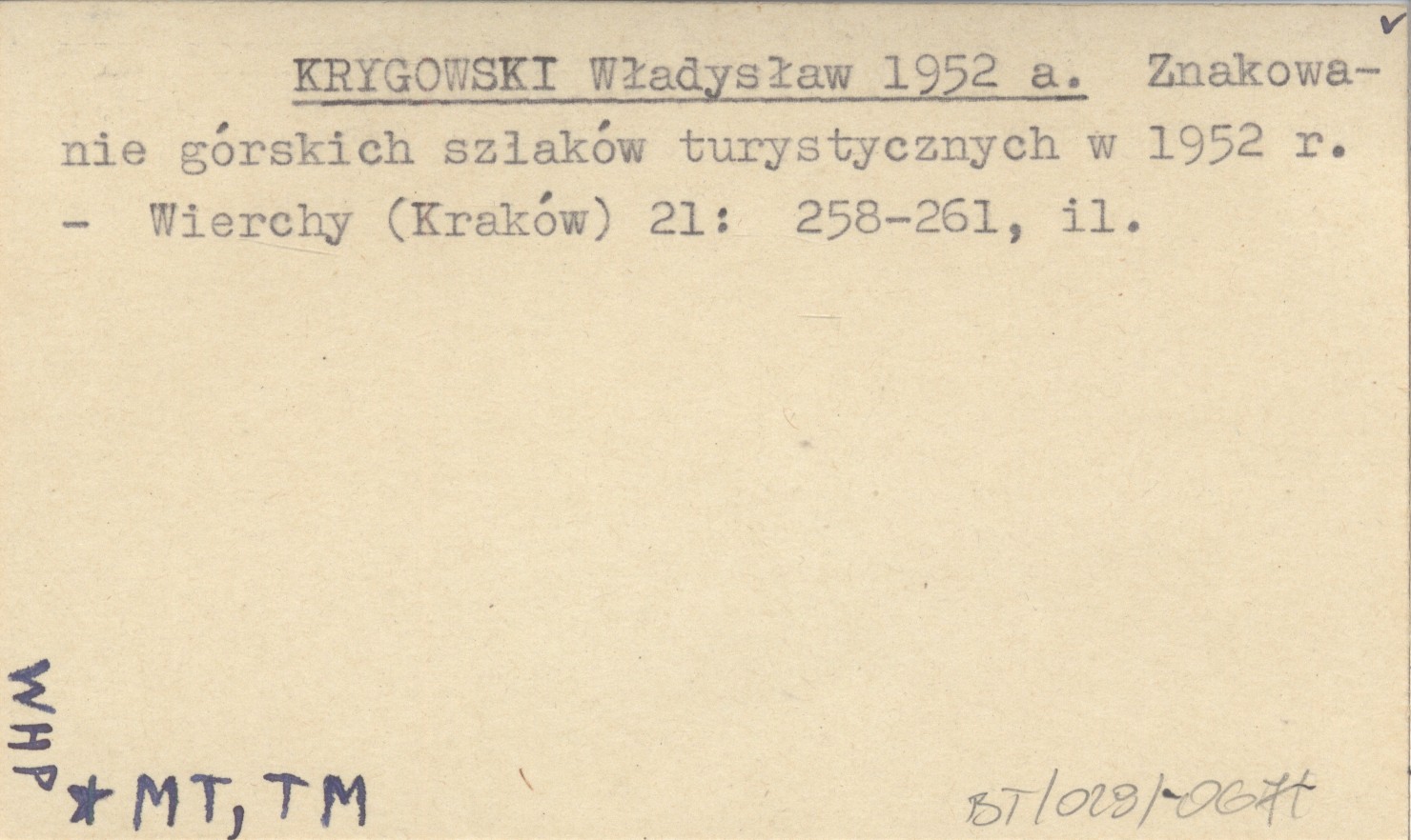 KRYGOWSKI Władysław 1952 a Znakowanie górskich szlaków turystycznych w 1952 r.