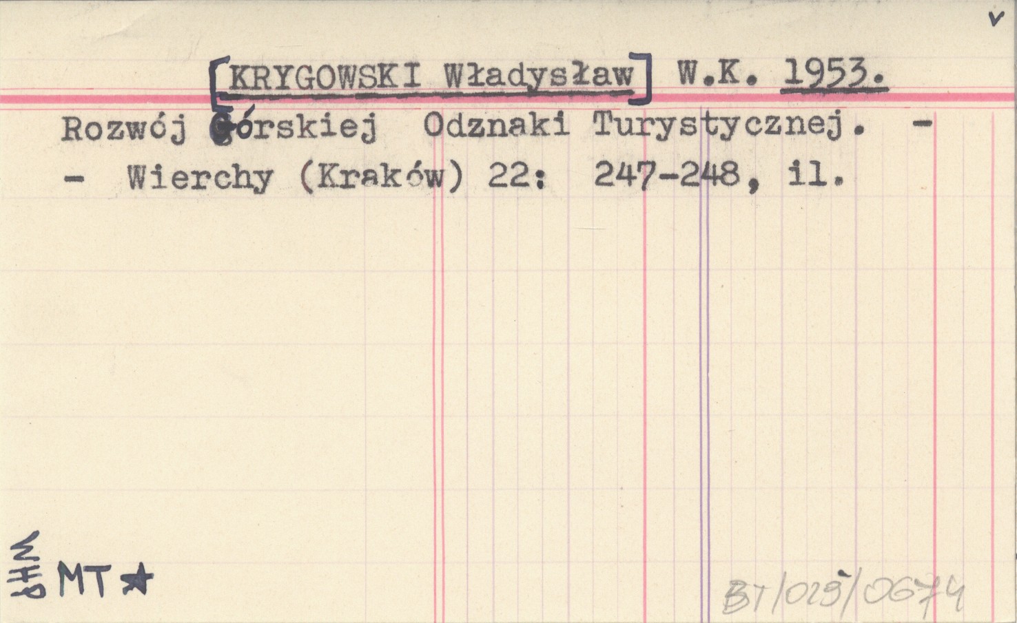 W. K. [KRYGOWSKI Władysław] 1953 Rozwój Górskiej Odznaki Turystycznej.