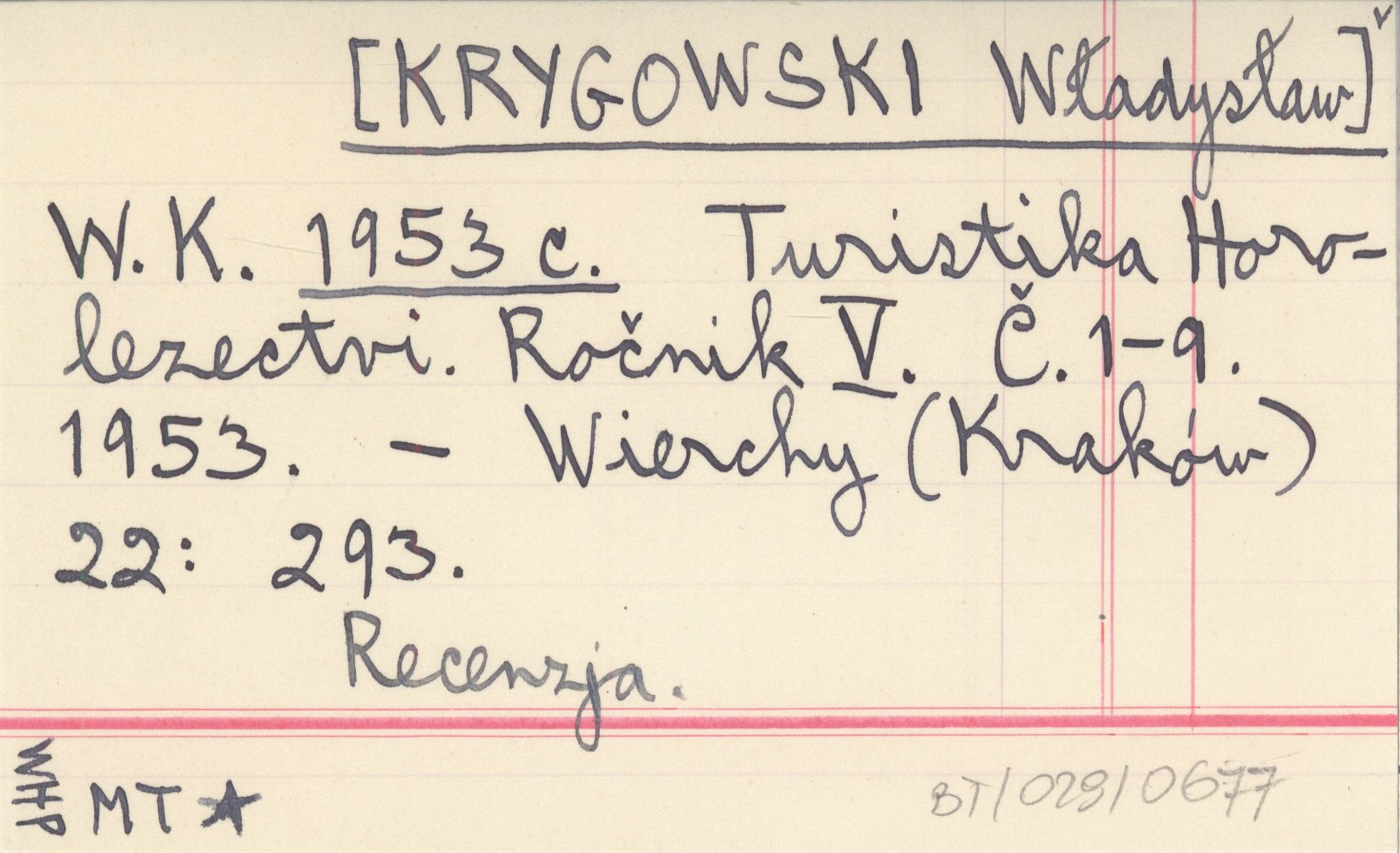 W. K. [KRYGOWSKI Władysław] 1953 c Turistika Horolezectvi. Ročnik V. Č. 1-9. 1953.
