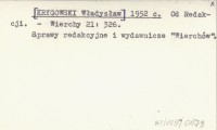[KRYGOWSKI Władysław] 1952 c Od Redakcji.