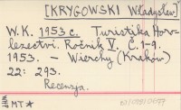 W. K. [KRYGOWSKI Władysław] 1953 b Czechosłowackie taternictwo.