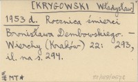 [KRYGOWSKI Władysław] 1953 d Rocznica śmierci Bronisława Dembowskiego.