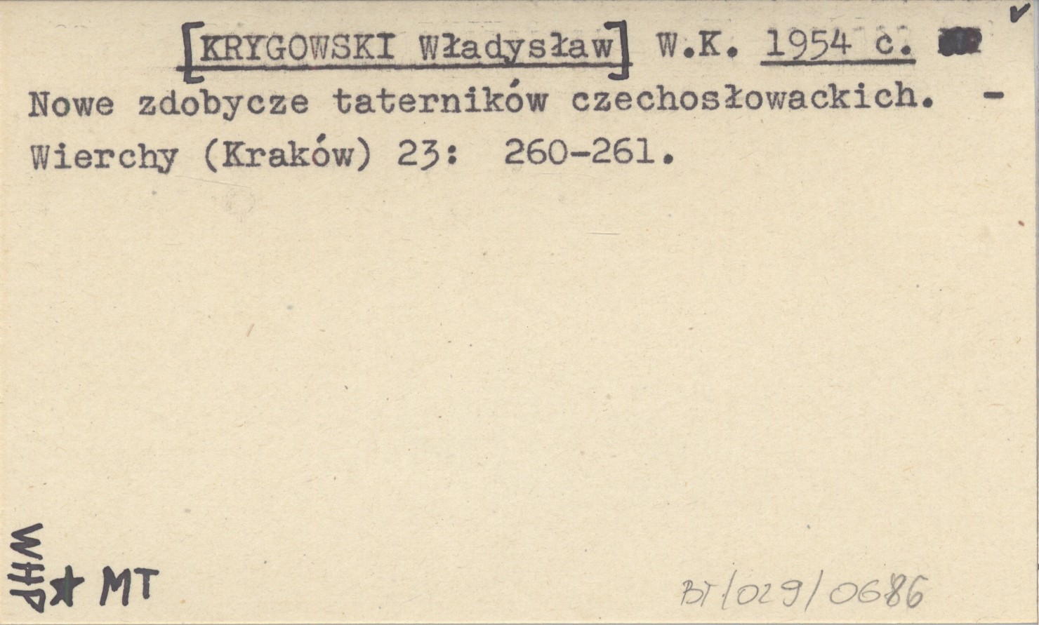 W. K. [KRYGOWSKI Władysław] 1954 c Nowe zdobycze taterników czechosłowackich.