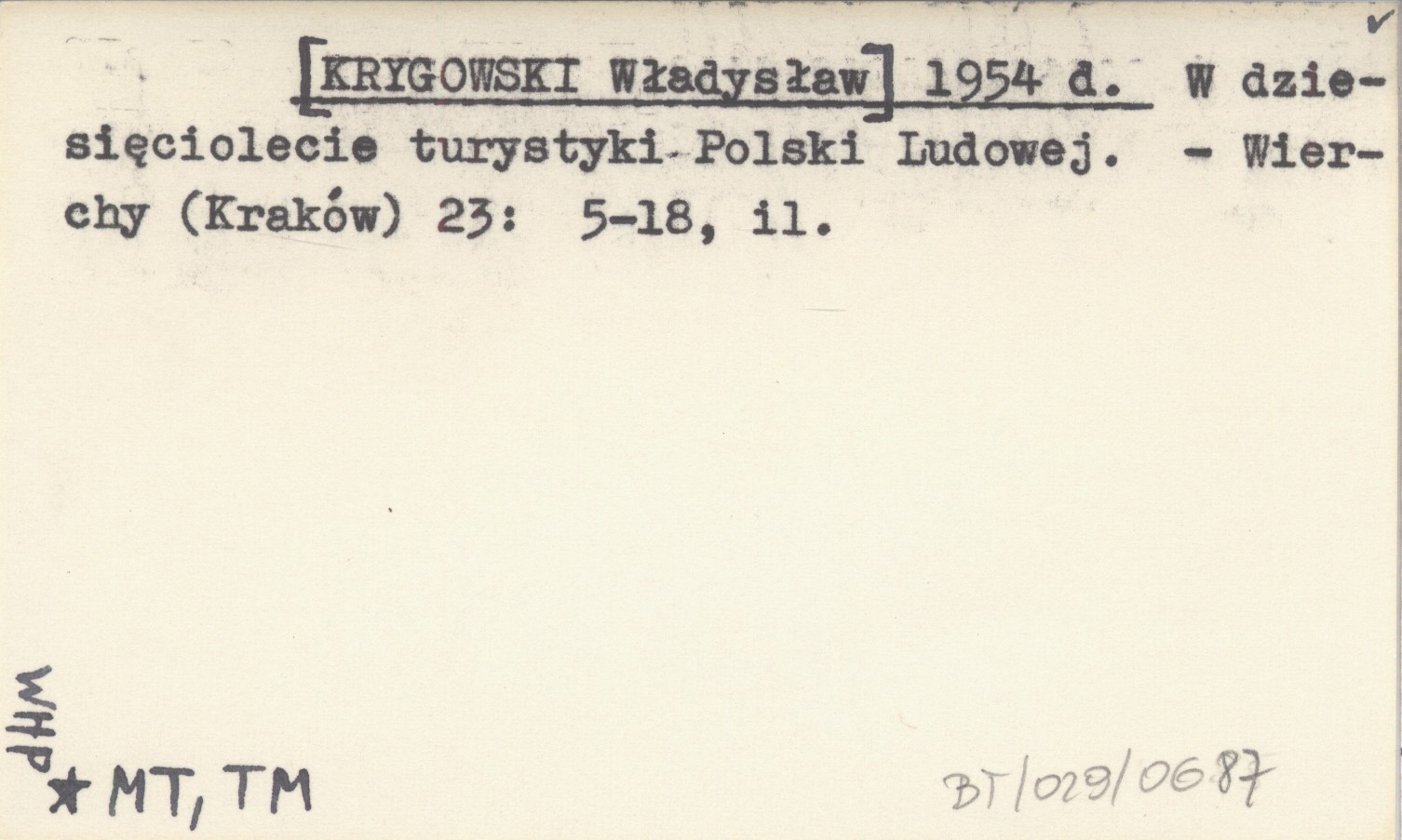 [KRYGOWSKI Władysław] 1954 d W dziesięciolecie turystyki Polski Ludowej.