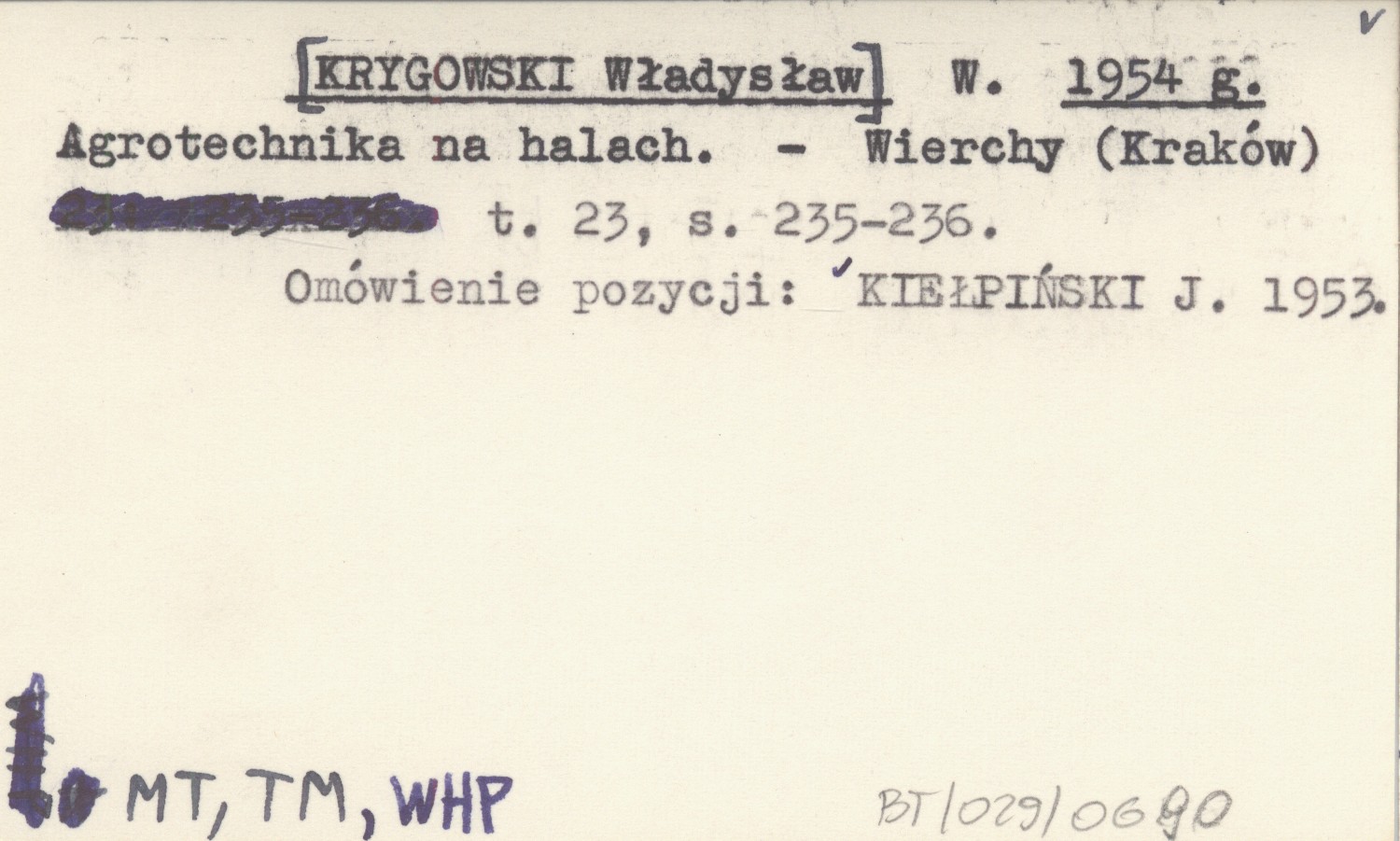 W. [KRYGOWSKI Władysław] 1954 g Agrotechnika na halach.