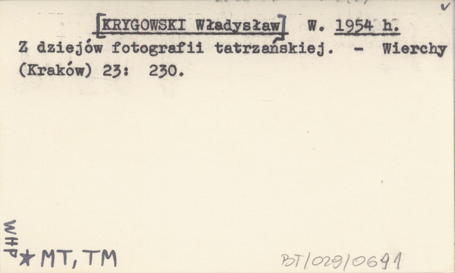 W. [KRYGOWSKI Władysław] 1954 h Z dziejów fotografii tatrzańskiej.