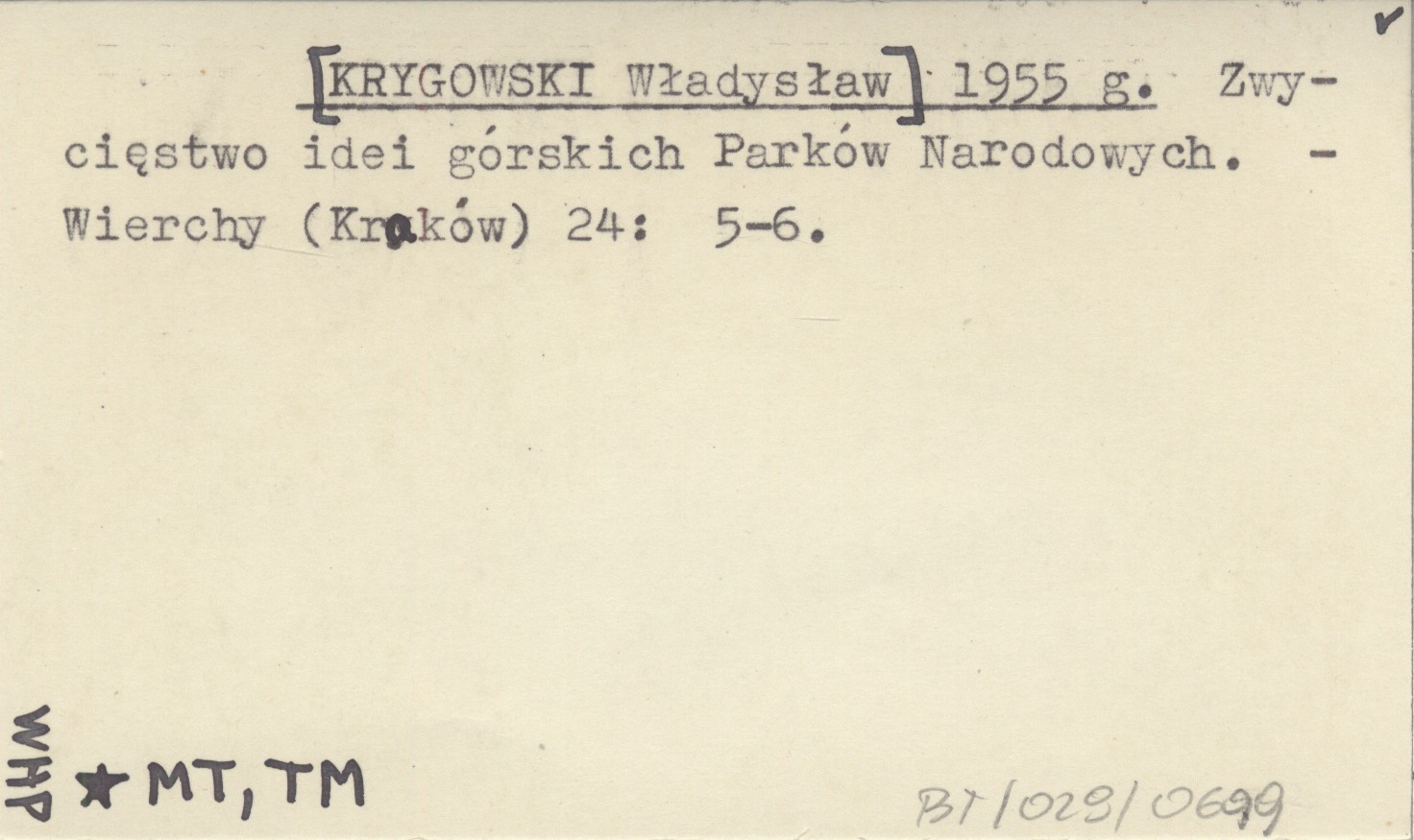 [KRYGOWSKI Władysław] 1955 g Zwycięstwo idei górskich Parków Narodowych.