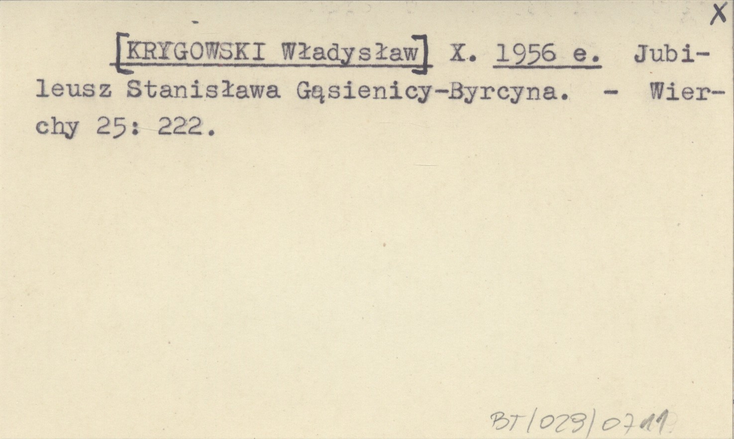 X. [KRYGOWSKI Władysław] 1956 e Jubileusz Stanisława Gąsienicy-Byrcyna.