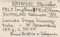 KRYNICKI Stanisław PELC [omyłkowo PELE], Roman. ; ŚWITALSKI, Kazimierz. ; 1911 Lwowska Grupa Uniwersytecka.