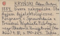 KRYŃSKI Adam Antoni 1884 Gwara zakopańska. Studyjum dyjalektologiczne.