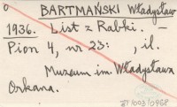 BARTMAŃSKI Władysław 1936 List z Rabki.