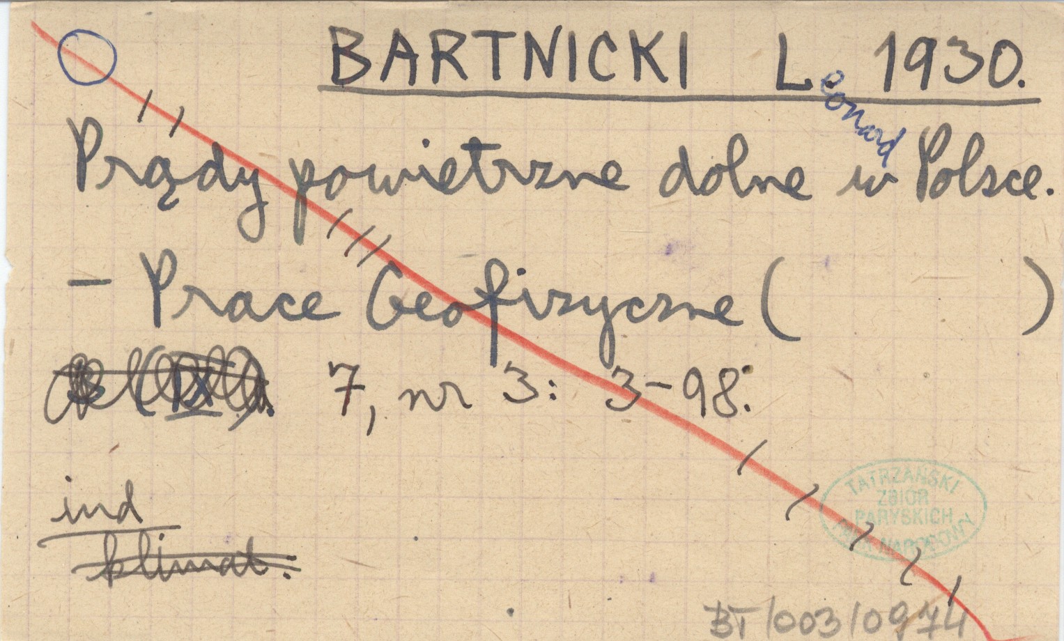 BARTNICKI Leonard 1930 Prądy powietrzne dolne w Polsce.