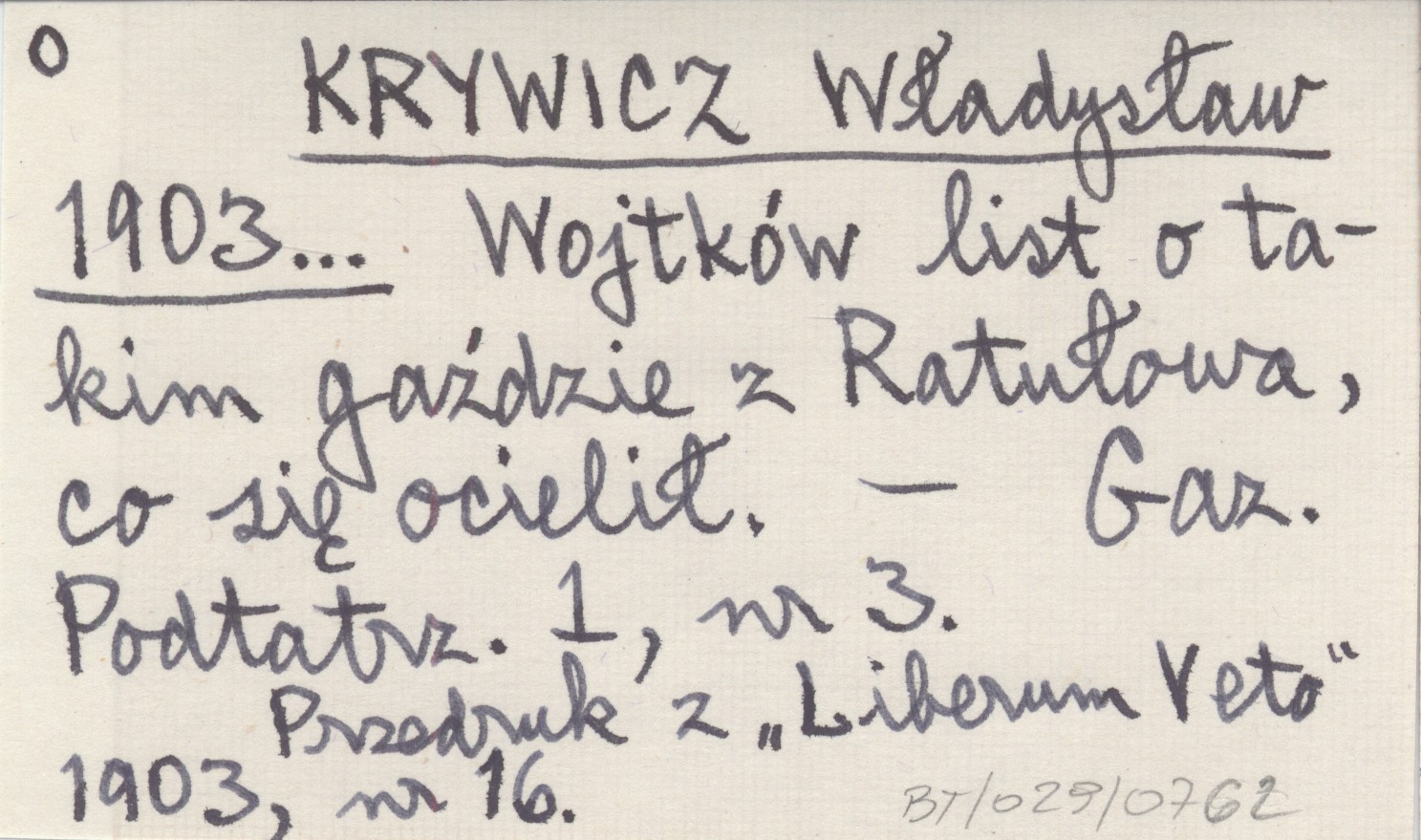 KRYWICZ Władysław 1903... Wojtków list o takim gaździe z Ratułowa, co się ocielił.
